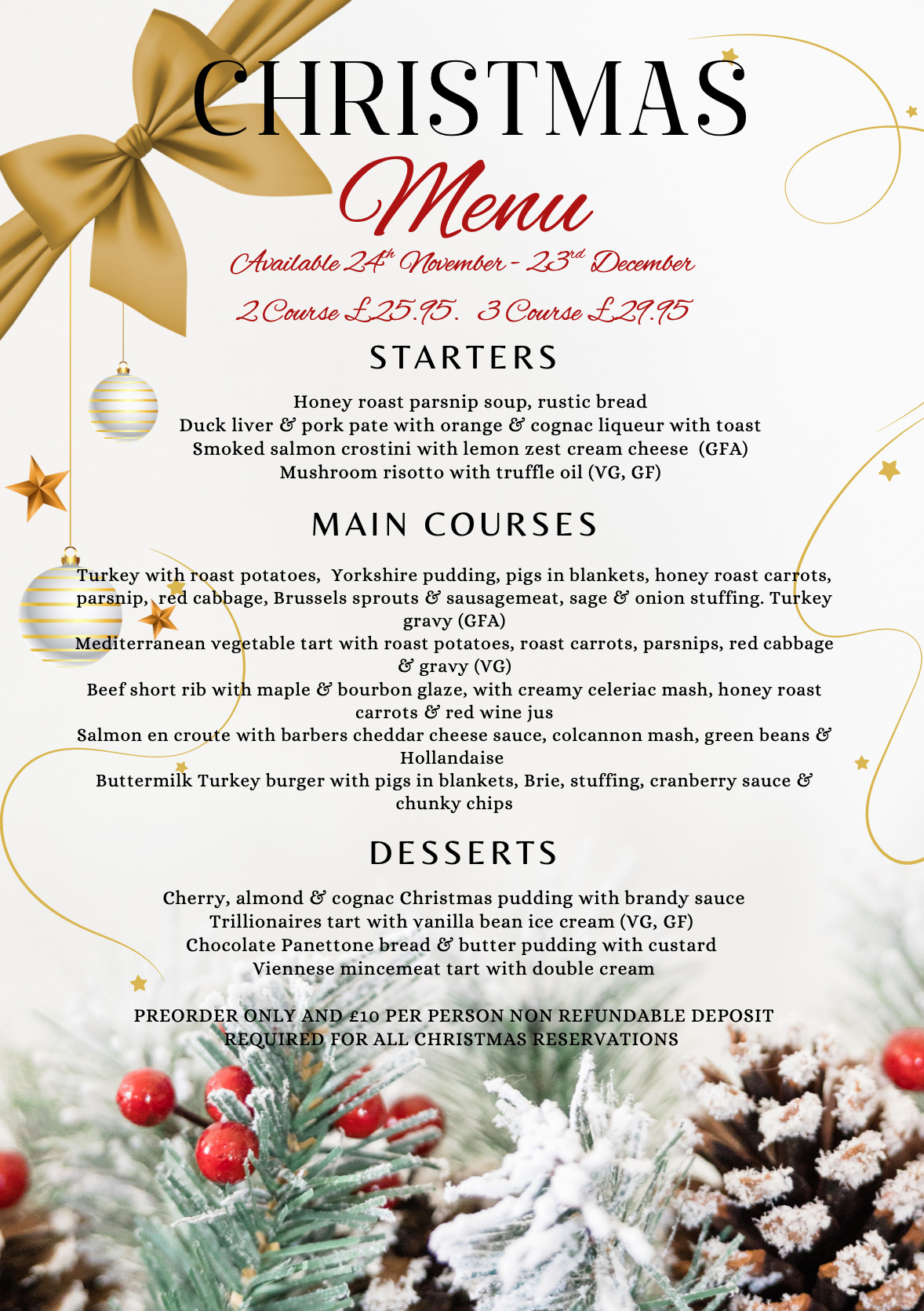 Get into the festive spirit this December at The Owl Pub in Loughton, your local destination for unforgettable Christmas events! Whether you're planning a cosy family meal, a festive work party, or a night out with friends, our beautifully decorated pub offers the perfect setting. Enjoy seasonal menus and winter drinks in a warm, welcoming atmosphere. Book early to avoid disappointment – make this Christmas one to remember at The Owl Pub, Loughton’s favourite festive hotspot!